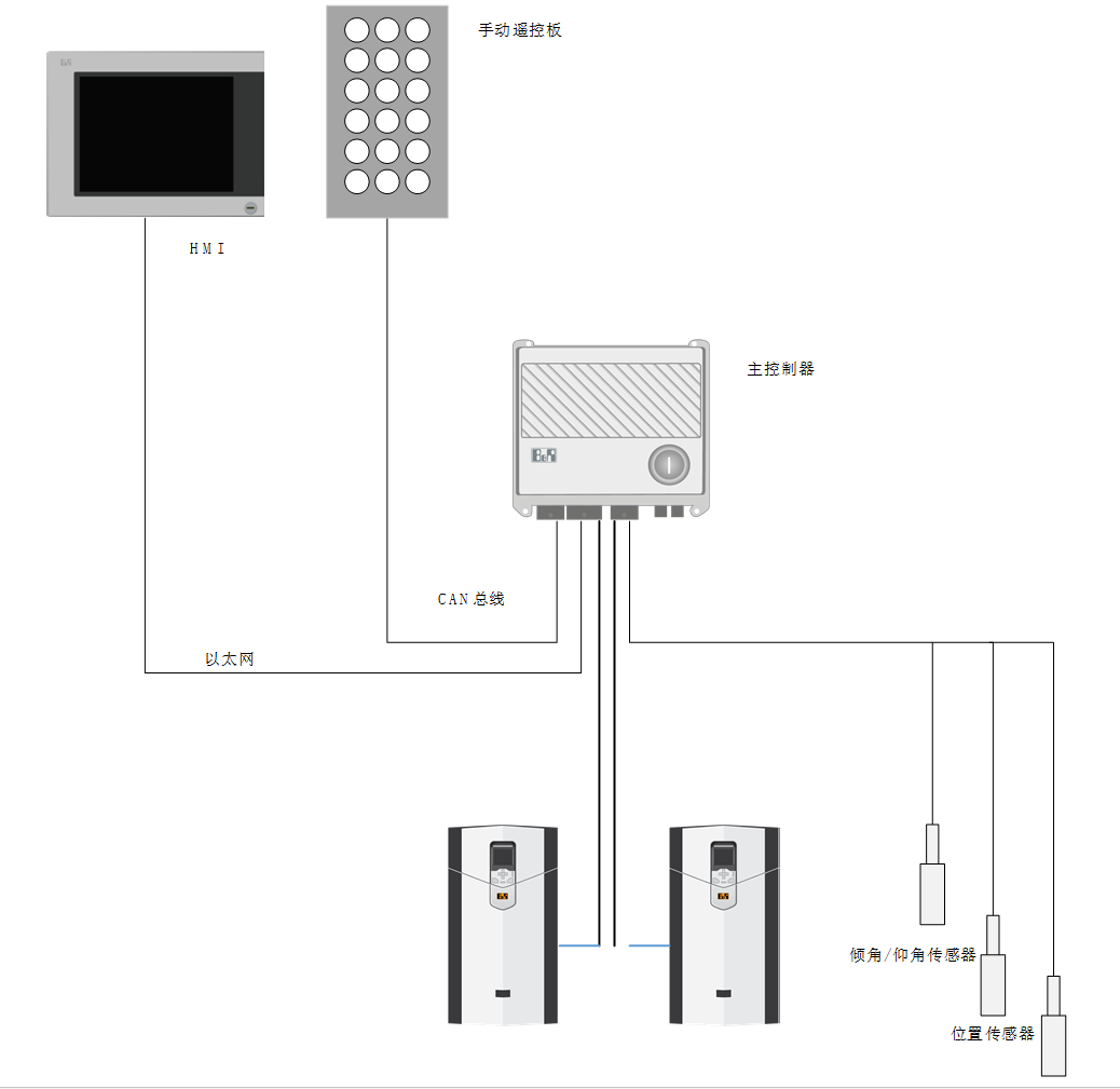 控制系統(tǒng)采用分布式CAN總線架構(gòu),包括:接觸器控制、變頻器控制、傳感中心監(jiān)測、數(shù)據(jù)遠程通訊、遙控接收等多條CAN總線,這些都需要應(yīng)用豐富的CAN接口,X90標(biāo)配了4個CAN接口,以及標(biāo)準(zhǔn)以太網(wǎng)和USB口。各接口可根據(jù)需要進行便捷的擴展。